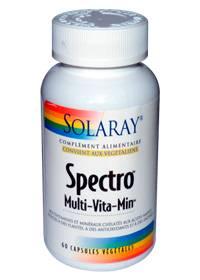 Spectro multi-vitamines et minéraux, est conditionnée en gélules végétales à base de cellulose de plantes. Spectro vous offre une protection antioxydante, contre les dégâts de radicaux libres, par l'apport d'ingrédients tels que le béta-carotène naturel (tiré de Blakeslea trispora) , la vitamine E naturelle, la vitamine C naturelle et sélénium. De plus, Spectro offre une gamme complète de vitamines, de minéraux, des électrolytes, des plantes, des enzymes digestives et un concentré d'aliments de culture biologique.